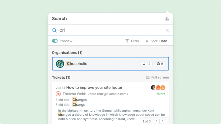 We added the option to preview a ticket message in the Global Search app to quickly see why it matched against the search term.
