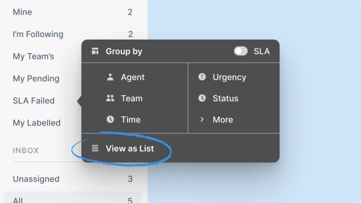 The View as List button lets agents copy settings from an existing Queue to create and personalize a custom List in seconds.